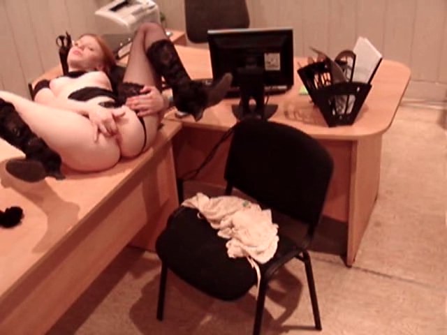 She'd be so ashamed if she knew that all the security men in the office saw her fierce masturbation session on the table! And she'd go down the drain if she knew that they sent us this video ;) Hear this lusty redhead moan and see her subtle fingers rubbing her slit and shoving deep between her puffy labia and between her round buttocks!
